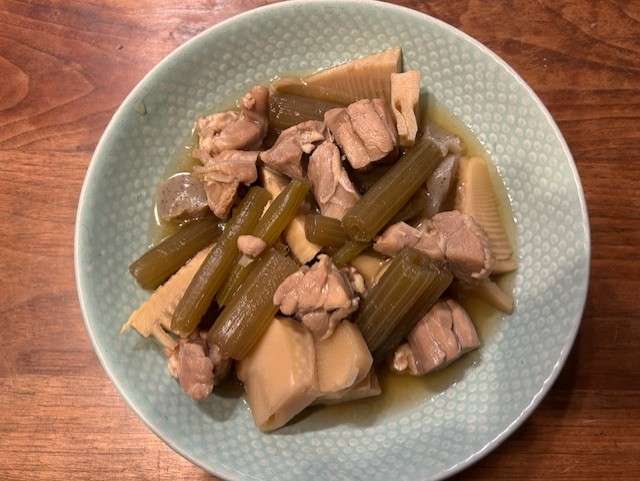 あと、奥さんのお母さんがタケノコとフキの煮物を差し入れしてくれて、