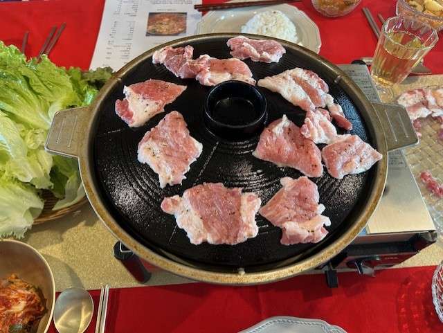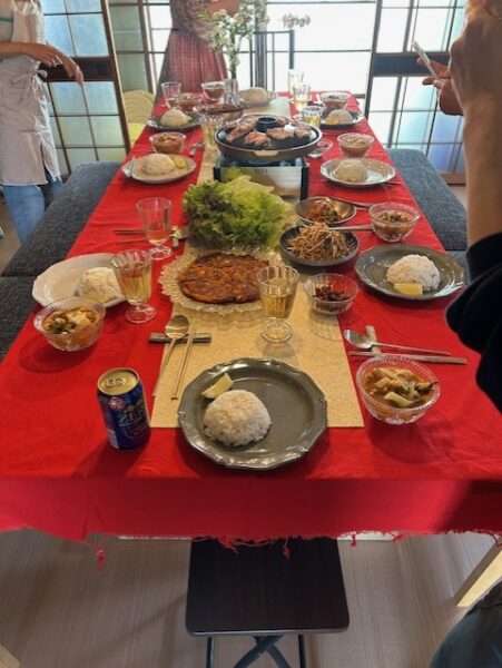 お昼ごはん用にチヂミ、プデチゲ、サムギョプサルを作って、みんなでワイワイ美味しくいただいた。