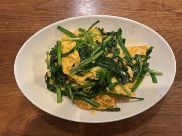 昨日はお客様に上等な卵(テツマEMタマゴ)をたくさんいただいたので「ニラ玉」を作った。