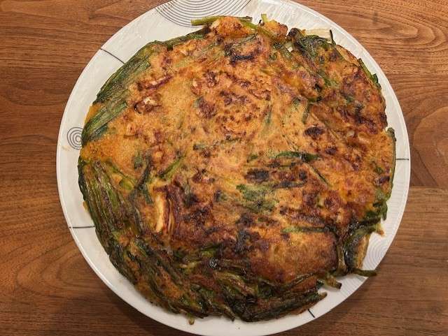 イカを格安で入手することに成功したのでニラとネギをたっぷり「海鮮チヂミ」を作った。