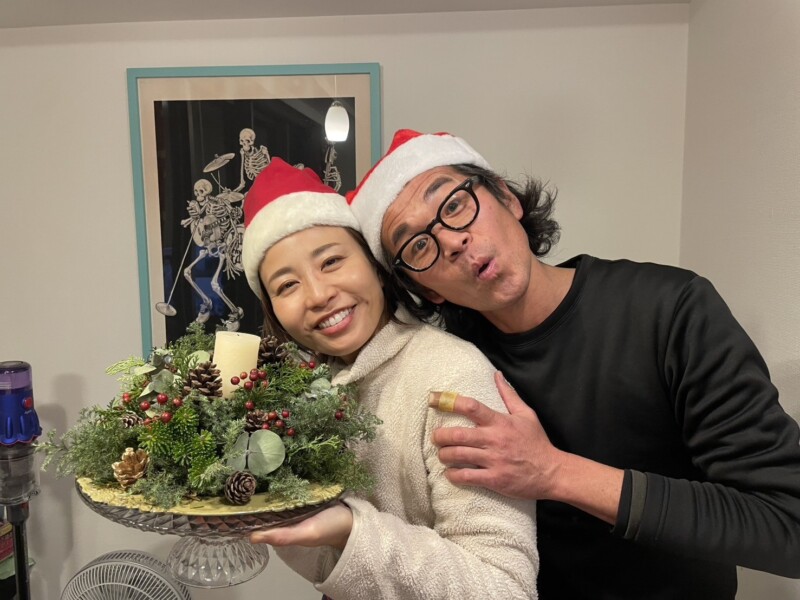自分が必死に料理を仕込んでいる間に奥さんはフラワーアレンジメント的なやつ(?)を作ってくれてクリスマスムードがグッと高まって楽しいイブを過ごさせてもらうことができた。