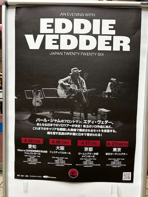 昨日は仕事を少し早くあがらせてもらい電車に飛び乗り「Niterra日本特殊陶業市民会館フォレストホール」にて開催されたアメリカのロックバンド「パール・ジャム」のヴォーカリスト「エディ・ヴェダー」のソロライブ(奇跡!)を観るために名古屋に向かった。